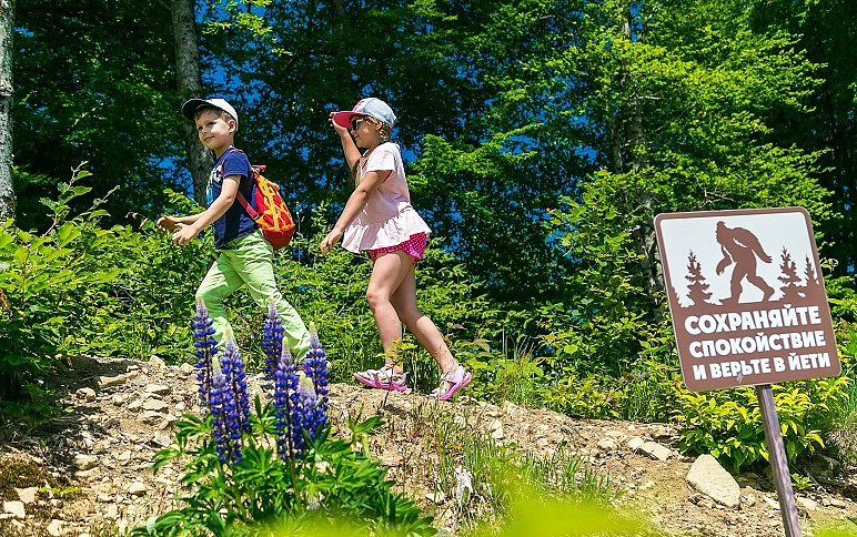 Летом отдых на курорте сосредоточен исключительно на природе. На свежем воздухе дети будут активно проводить время: узнавать мир гор, искать сокровища Йети, испытывать веревочные маршруты.